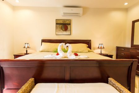 Monte Carlo Unidad # 1 tiene 2 dormitorios, en el dormitorio principal hay una cama king y en la habitación de invitados hay 2 camas individuales. Hay 2 baños, uno con ducha y otro con bañera. Este condominio de lujo es perfecto para hasta 4 personas, viene completamente equipado con todo lo que necesitas.